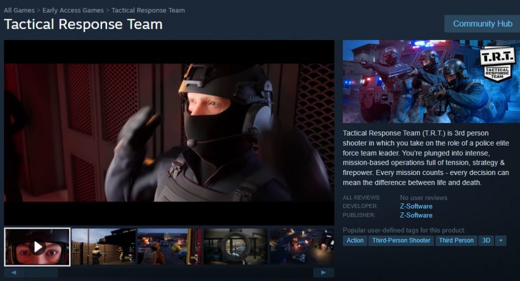 The Z-Software team is proud to announce the launch of our new project, “Tactical Response Team,” with high hopes for the future. This Early Access title on Steam is a third-person shooter set in a police environment: special police forces, often referred to as SWAT.
